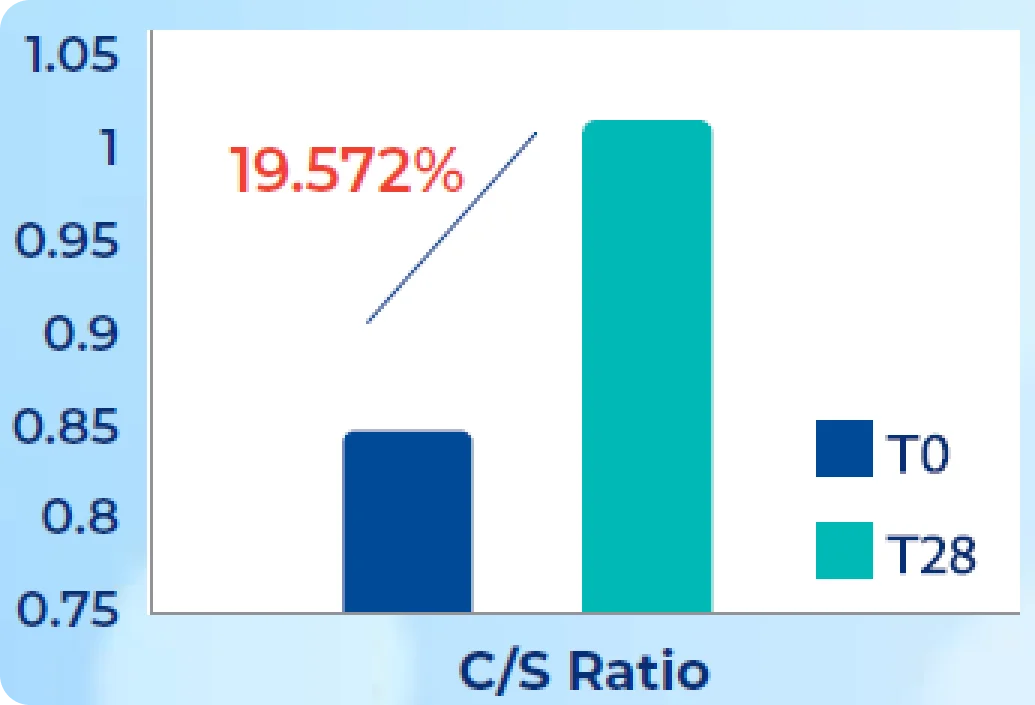พบว่า ตั้งแต่วันที่ 0 ถึงวันที่ 28 ของการทดสอบ