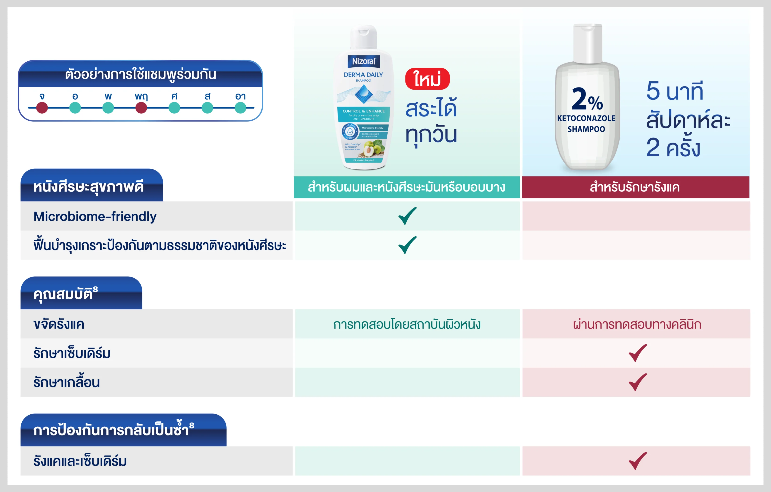 - ควบคุมรังแคและความมันของหนังศีรษะได้ยาวนาน